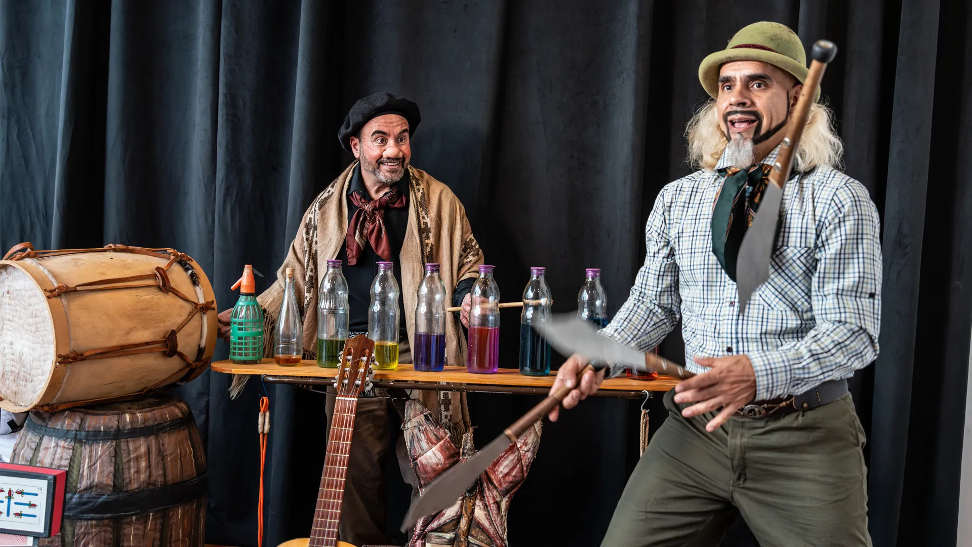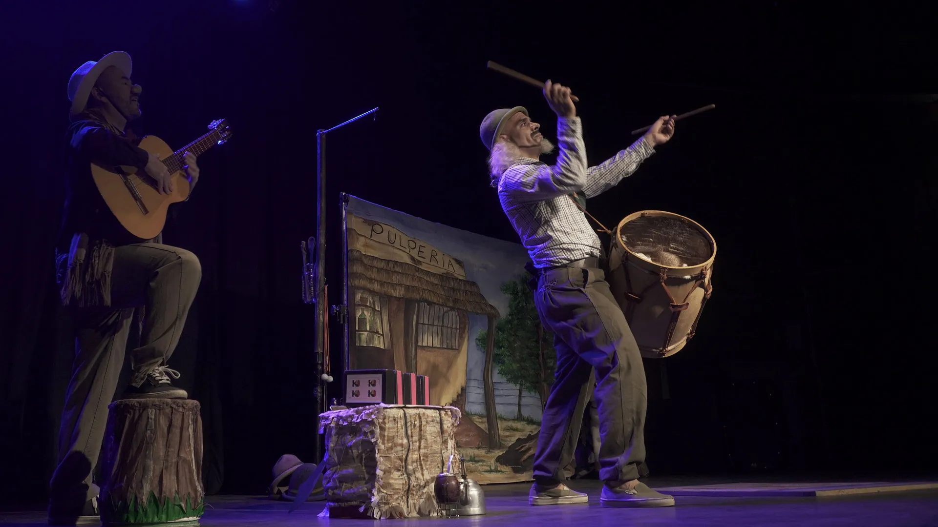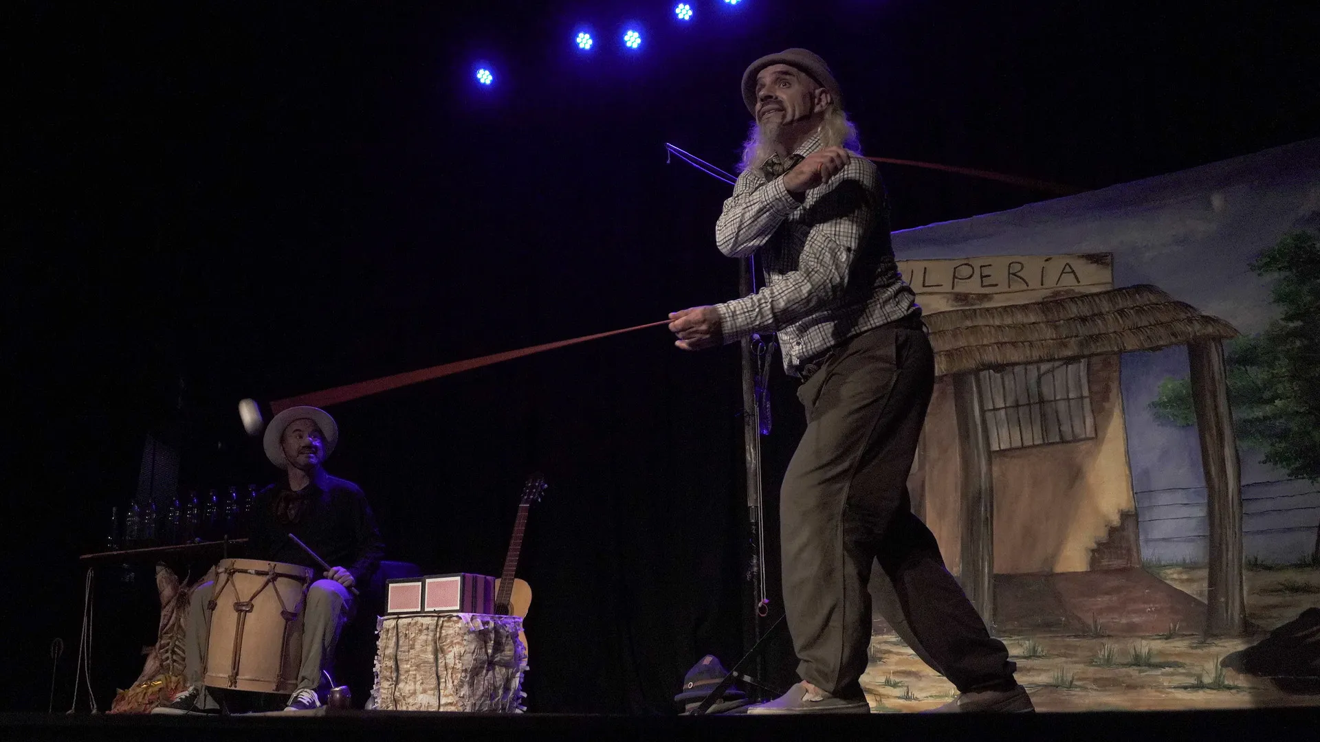 Es una obra muy pícara, con música en vivo, guitarra criolla, bombo legüero, payadas contrapuntos, técnicas de Boleadoras –Malambo Fantasía- Manipulación de sombreros, manejo de facones y malabares, el juego del truco con asombrosos naipes españoles, mate, asado, botellas afinadas, y un caballo a domar para la destreza de la sortija- con zancos acrobáticos- al ritmo de un gato.